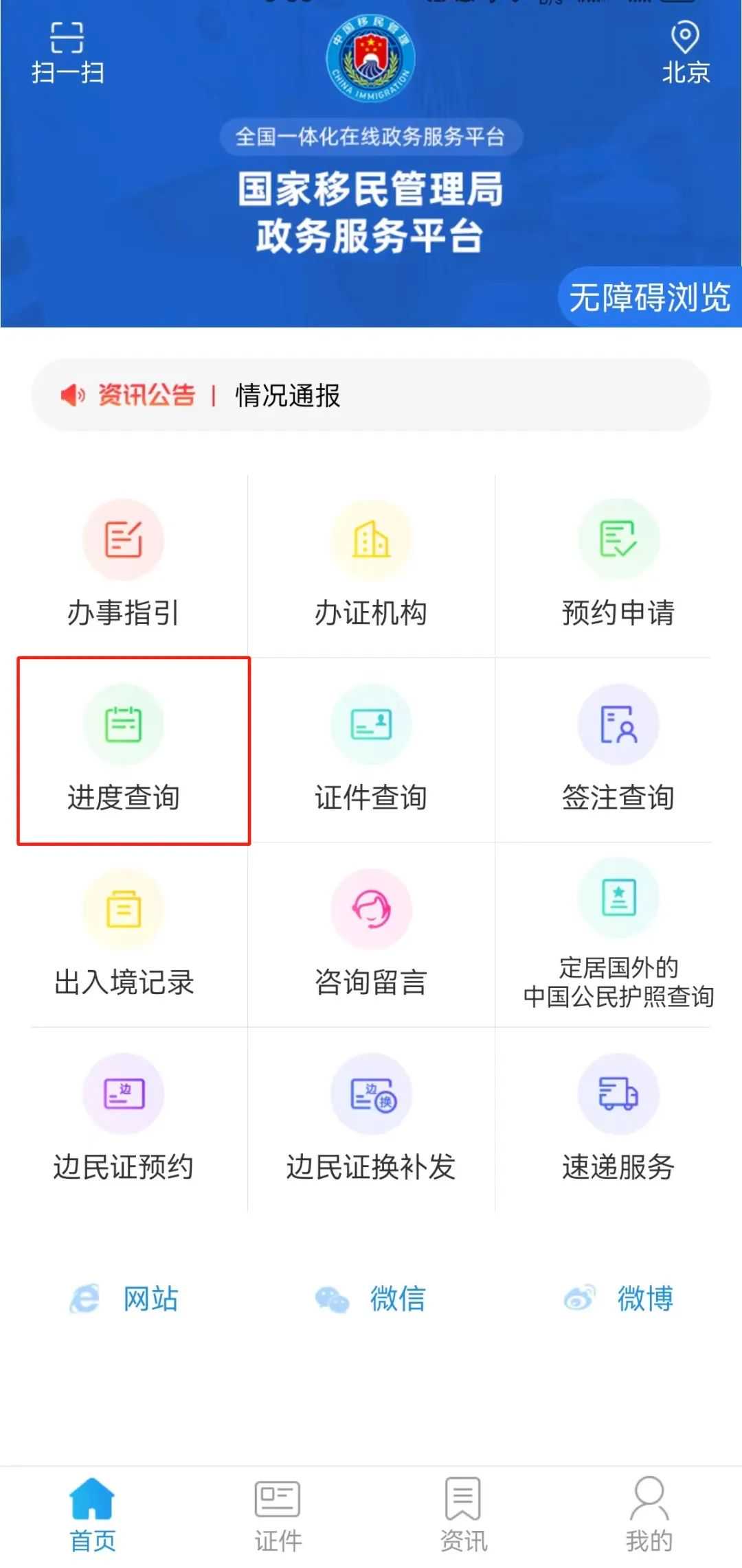 以“移民局”App为例,具体操作步骤如下: