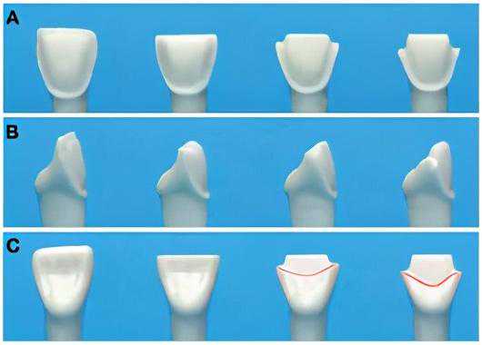 (6)修整:因远中轴沟移至颊侧,边缘修整较容易。
