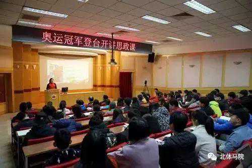 11月13日,北京体育大学邀请党的十九大代表、里约奥运会冠军宫金杰,在校生代表、短道速滑世界冠军林孟和羽毛球世界冠军王适娴登上讲台,开讲思政课。让著名运动员结合自己的职业经历讲解十九大精神及其学习的心得体会,是北京体育大学近期思政课改革的一个新尝试。