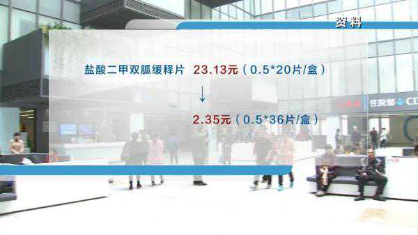 糖尿病患者常用药盐酸二甲双胍缓释片,原研药由上海施贵宝制药有限公司生产,0.5克20片装的价格为23.13元,中选企业华北制药生产的0.5克36片装,价格仅为2.35元,降幅达94%。