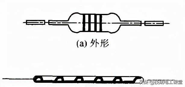 碳膜电阻器是将通过真空髙温热分解的结晶碳沉积在柱形或管形的陶瓷骨架上制成的。用控制碳膜的厚度和刻槽来控制电阻值。碳膜电阻器的外形和结构如图2所示。