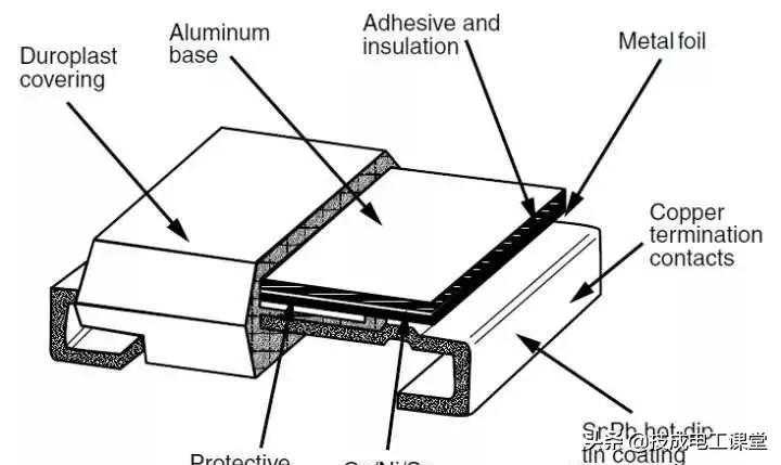 与碳膜电阻结构类似,金属膜电阻主要是利用真空沉积技术在陶瓷棒上形成一层镍铬合金镀膜,然后在镀膜上加工出螺旋沟槽来精确控制电阻。金属膜电阻可以说是性能比较好的电阻,精度高,可以做E192系列,然后温度特性好,噪声低,更加稳定。
