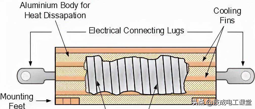 采用特别的线绕方式,使得电感量仅为一般线绕电阻的几十人之一。采用金属外壳利于散热。