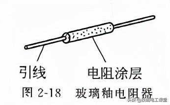 (4)玻璃釉电阻器玻璃釉电阻器构造如图2-18所示,在陶瓷骨架上涂覆一层金属氧化物和玻璃釉黏合剂的混合物作为电阻体,经高温烧结而成。
