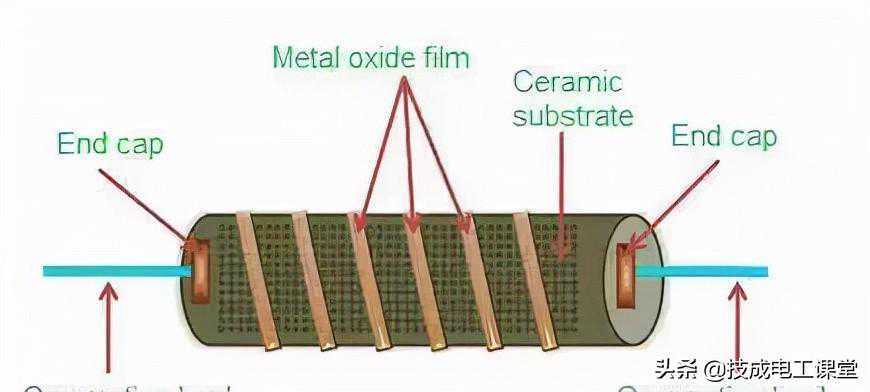 与金属膜电阻结构类似,金属氧化物膜主要是在陶瓷棒形成一层锡氧化物膜,为了增加电阻,可以在锡氧化物膜上加一层锑氧化物膜,然后在氧化物膜上加工出螺旋沟槽来精确控制电阻。金属氧化物膜电阻最大的优势就是耐高温。