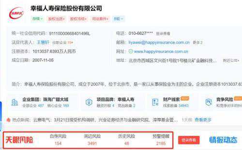 天眼查还显示,幸福人寿周边风险高达3500多项。