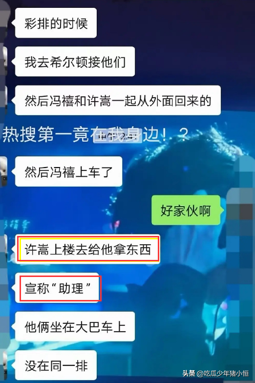 11月3日,有网友爆料许嵩还陪冯禧去参加了飞天奖,当天冯禧作为主持人到场,许嵩则一直帮她提包,开车门,被人认出来,还称自己是冯禧的助理,跑上跑下地给她拿东西。