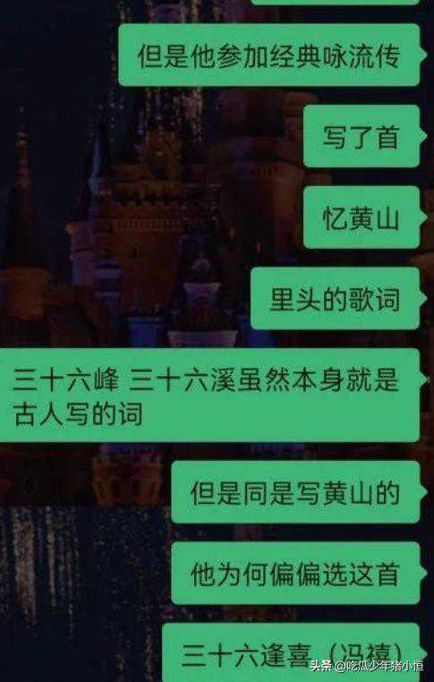 而许嵩在录节目的时候还特意写过一首歌叫《忆黄山》,其中有一句歌词是“三十六峰,三十六溪”,合在一起就是峰溪(冯禧),虽然是个谐音梗,但足以可见其用心。