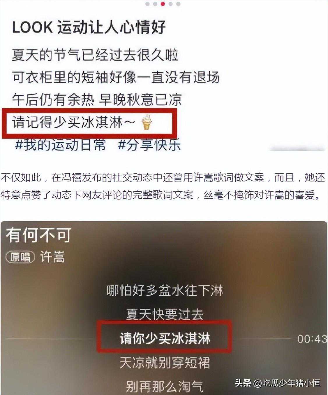 许嵩的更多恋爱细节也被网友扒了个遍。冯禧曾用许嵩的歌词做文案,完全不掩饰自己对偶像的喜欢。