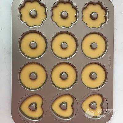 7、模具提前抹上融化的黄油。将面糊挤入模具内。7分满即可。
