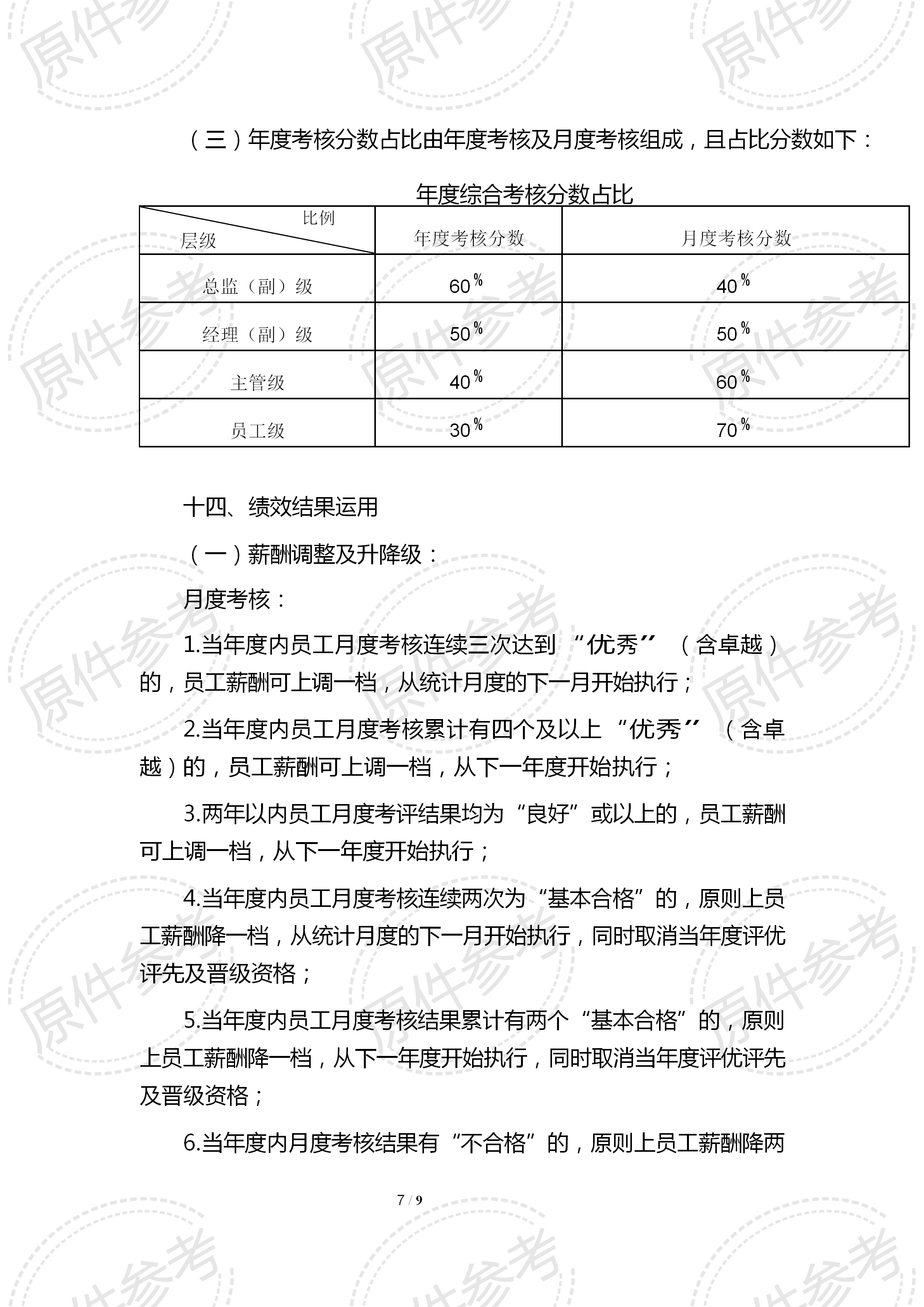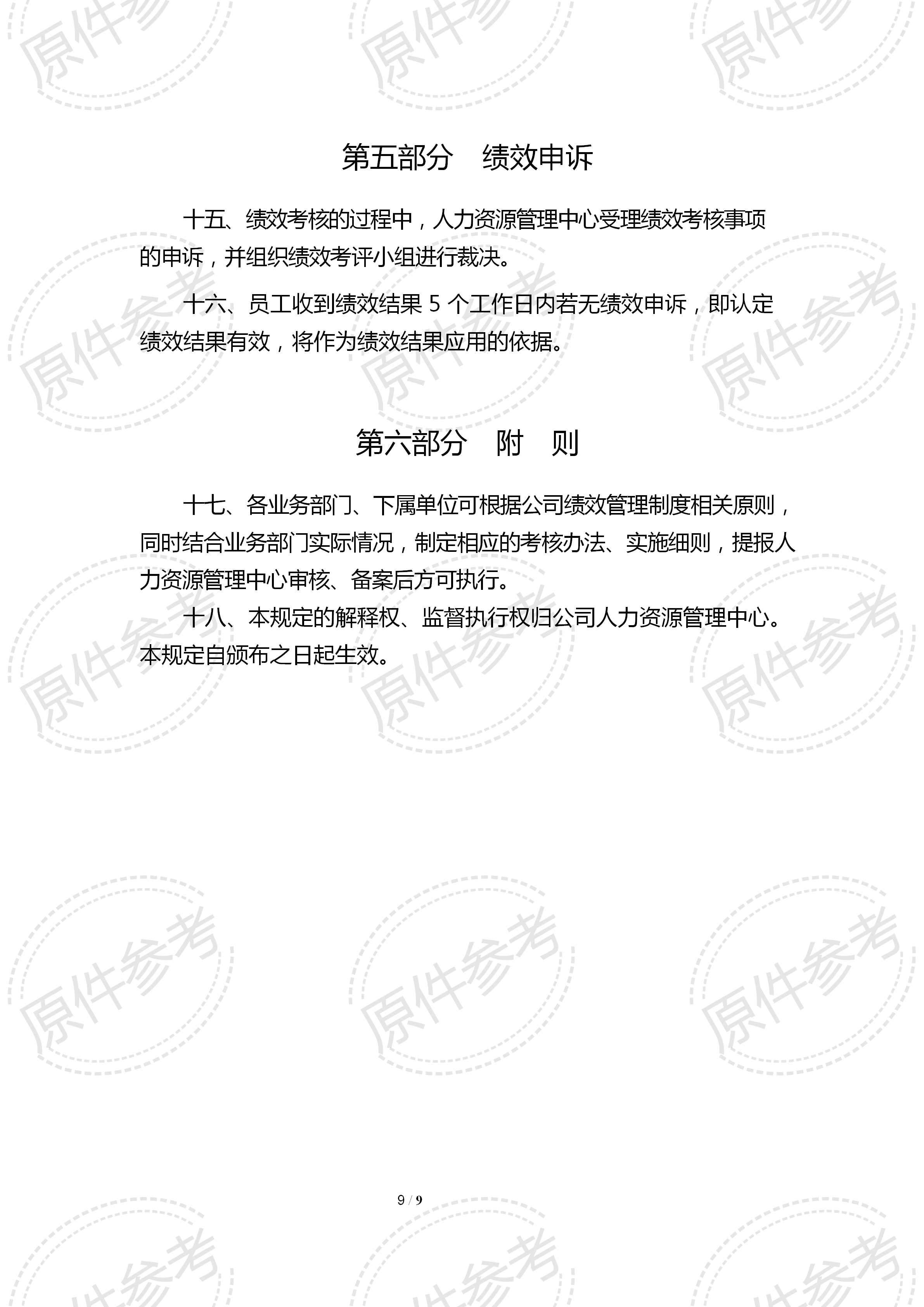六、公司人力资源管理中心是员工绩效管理工作的组织执行机构,承担公司员工绩效管理的计划、组织、实施和监督职责。