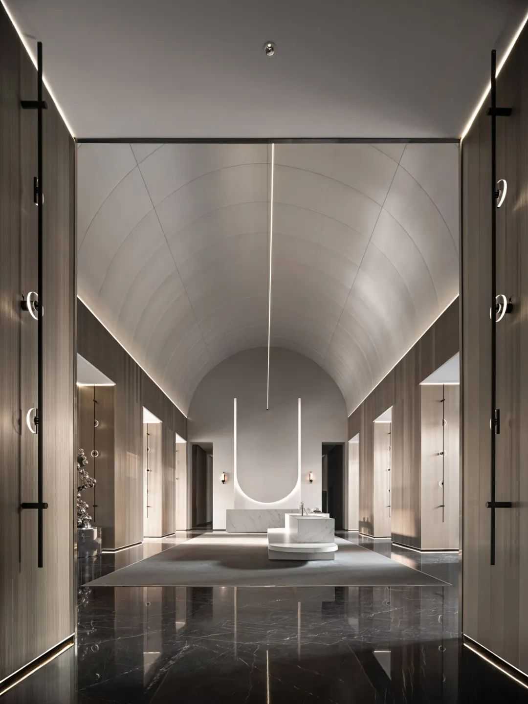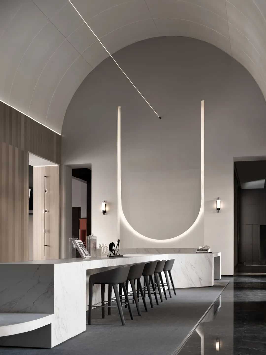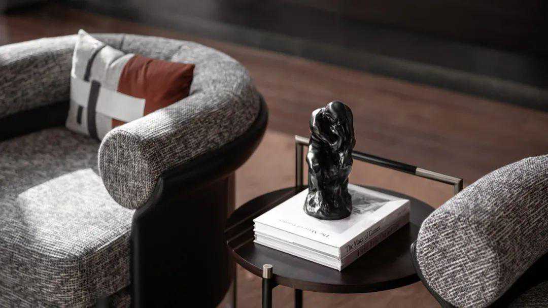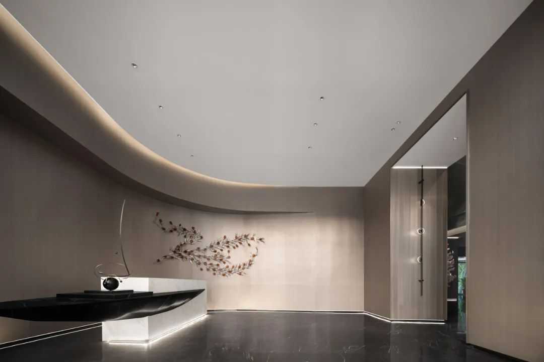 流动的线条感呼应墙上的艺术装置,呈现内在的恒久气质,设计以简洁更纯粹的手法去探索、思考,人与空间的对话、人与空间的共续;执着于材料的精致,执着于构图的魅力,开篇呈现的这个空间吸引人想更近一步探索。