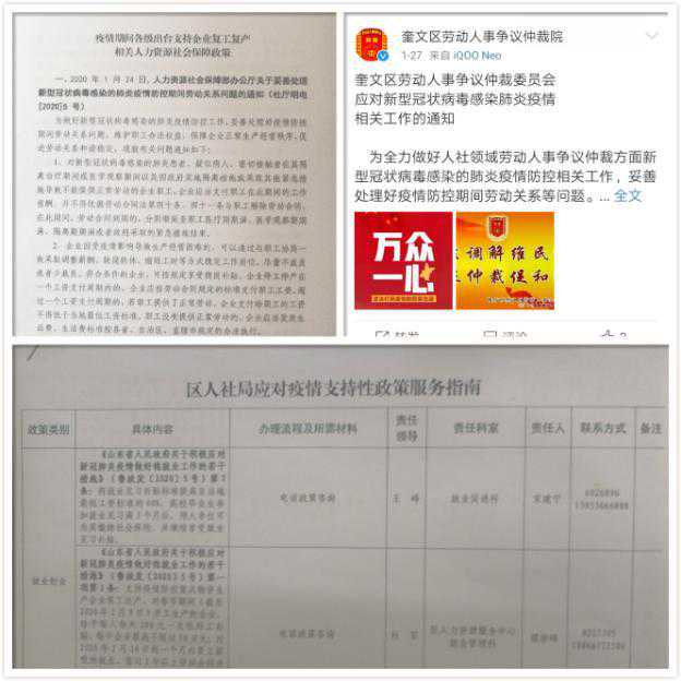 消“除”劳资纠纷隐患稳就业。汇总编制《应对疫情支持性政策服务指南》56项,注明咨询电话及办理流程,确保咨询服务有问即答、答必有据,有效避免政策理解偏差引发的劳资矛盾。加强应急值守,安排专人受理12345市长热线和舆情专办单并及时回复,第一时间对劳动投诉举报进行调查处理,确保小矛盾、小纠纷及时化解,先后受理市长热线转办单800余个,回复企业提前复工投诉和工资待遇、社保缓缴、援企稳岗补贴咨询570余条。研究制定《奎文区劳动人事争议仲裁委员会应对新型冠状病毒感染肺炎疫情相关工作的通知》,对节前申请立案的16起劳动仲裁案件依法中止审理程序,做出仲裁案件延期审理决定44个并电话通知案件当事人,消除劳资双方因疫情防控不能及时到庭产生的顾虑,有利于企业专心复工投产,保障劳动关系和谐稳定。(通讯员刘文平张茜)