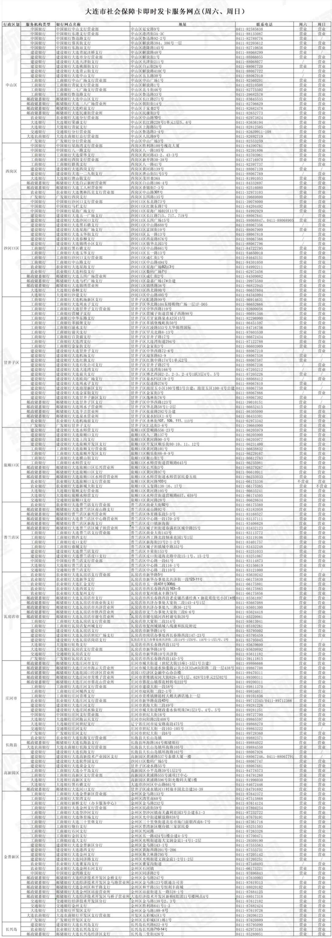 附件:大连市社会保障卡即时发卡服务网点(周六、周日)