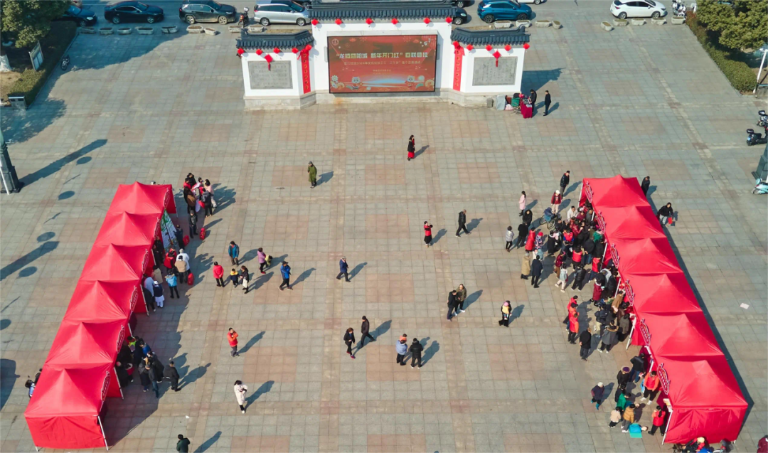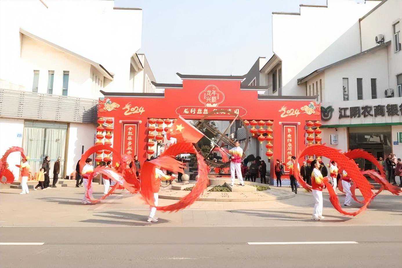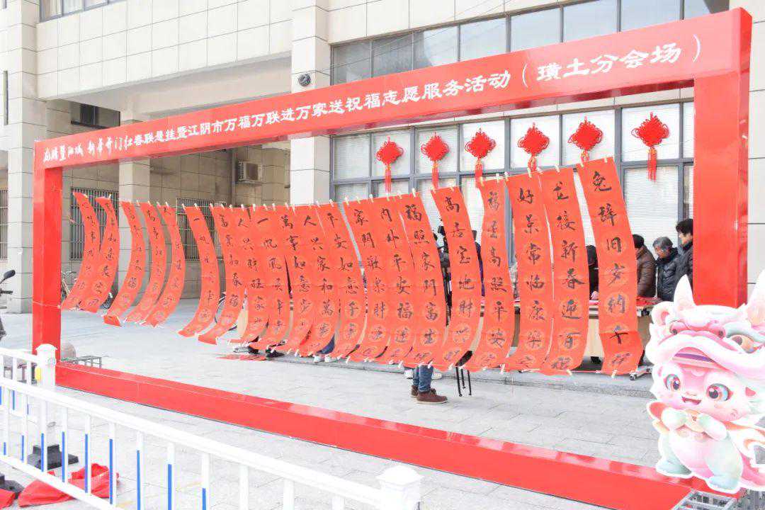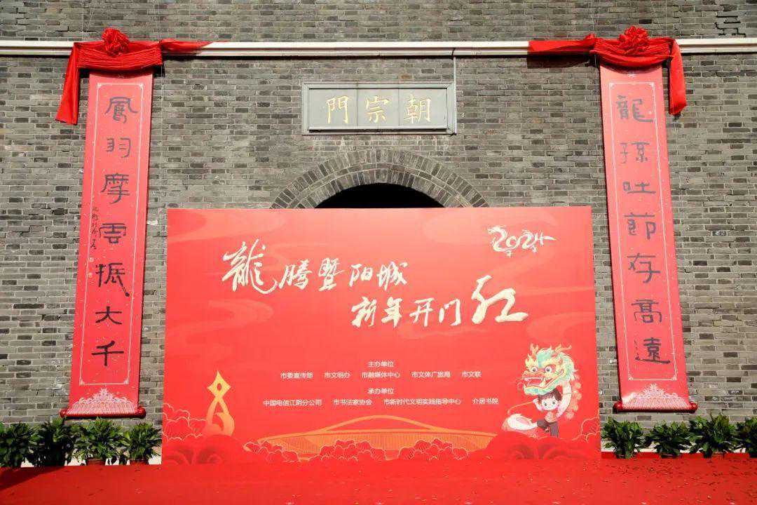 “龙腾暨阳城新年开门红”春联悬挂