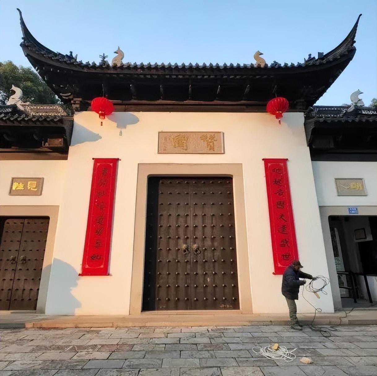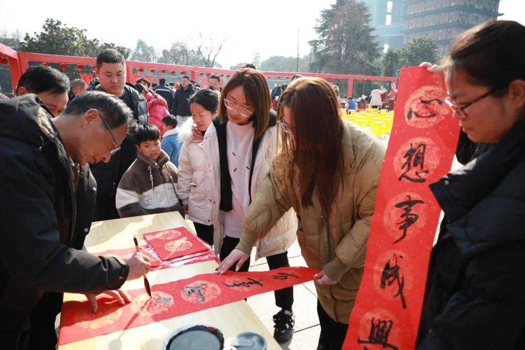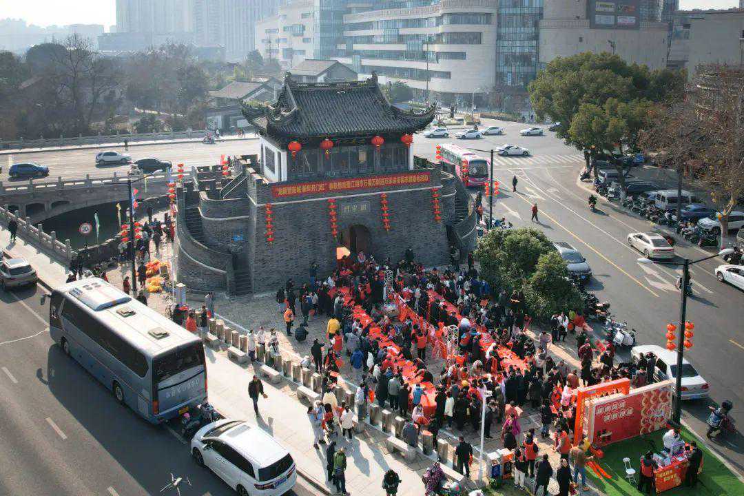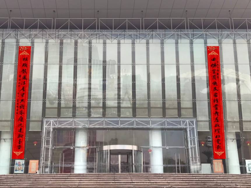 “龙腾暨阳城新年开门红”春联悬挂