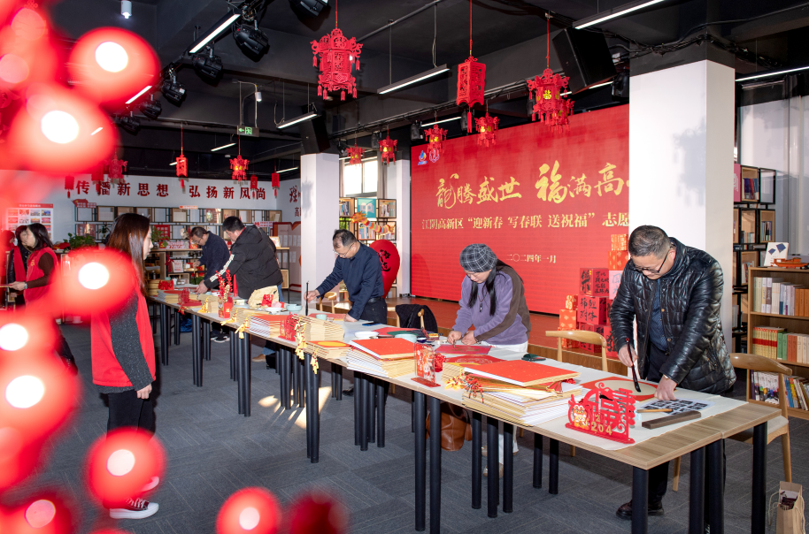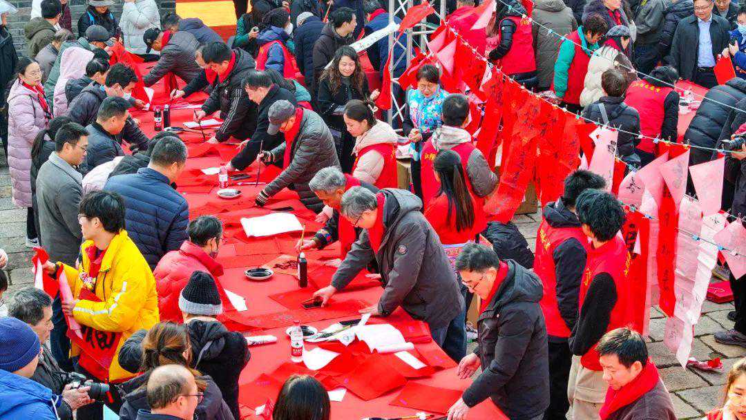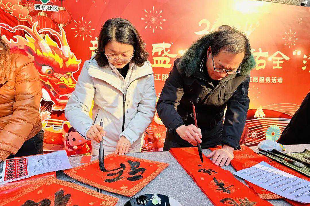 江阴市书法家协会副主席武宝民:“近日,我们组织了17位书法家开展以“龙腾盛世福佑全澄”为主题的写春联送祝福活动,张贴在江阴各大景点及S1线站点、公交车上,希望通过悬挂春联,让全市人民感受到浓浓的年味。”