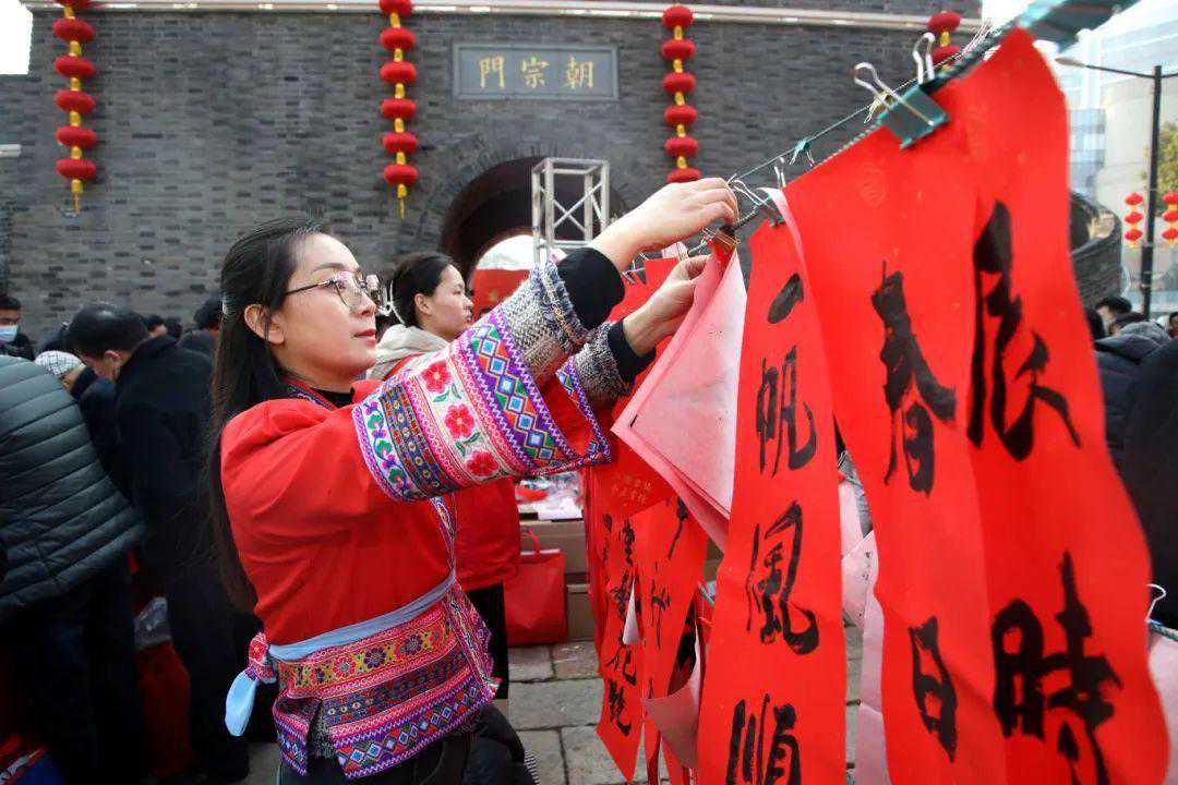 在朝宗门举行的春联悬挂