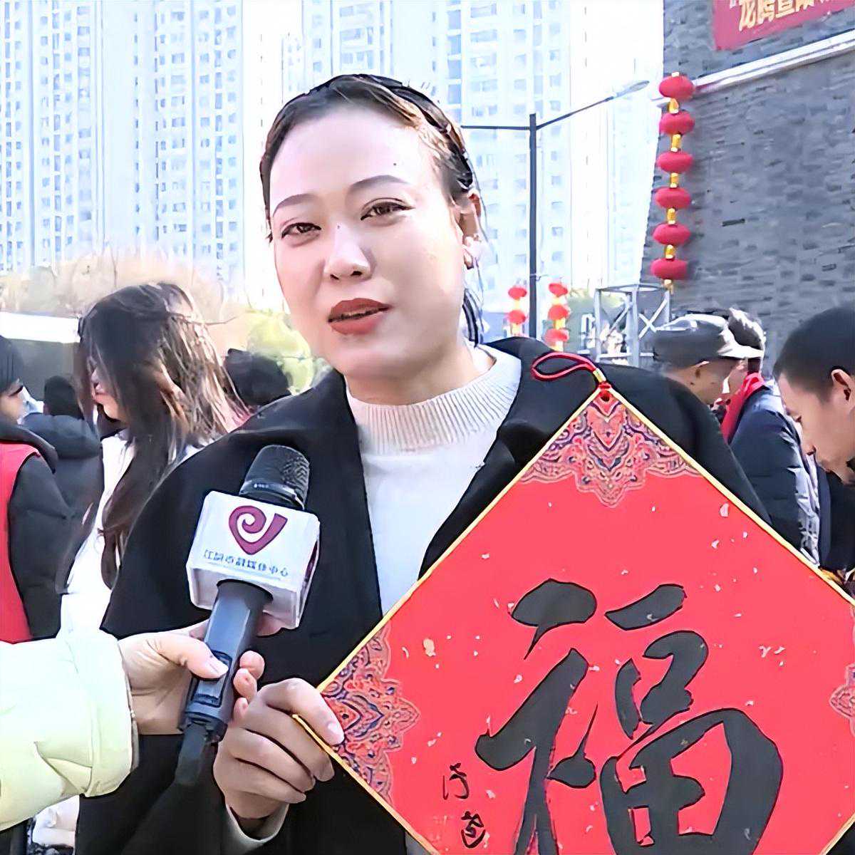 江阴市民张琼:“今天现场领到了这个福字我觉得很开心,也希望新的一年龙行龘龘、前程朤朤。”