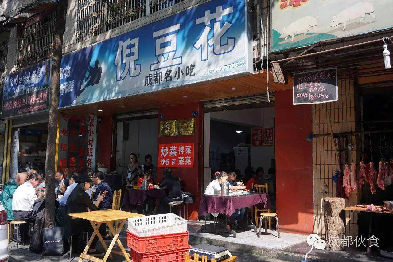 豆花是成都人喜爱的菜肴,豆花的精髓在调料,成都人的豆花调料是非常讲究的。经营豆花的还有“谭豆花”。区别就在于各家的调料不一样,各有千秋,各有所长。发展到现在,谭豆花看起来比倪豆花经营得更具有老字号的特点。