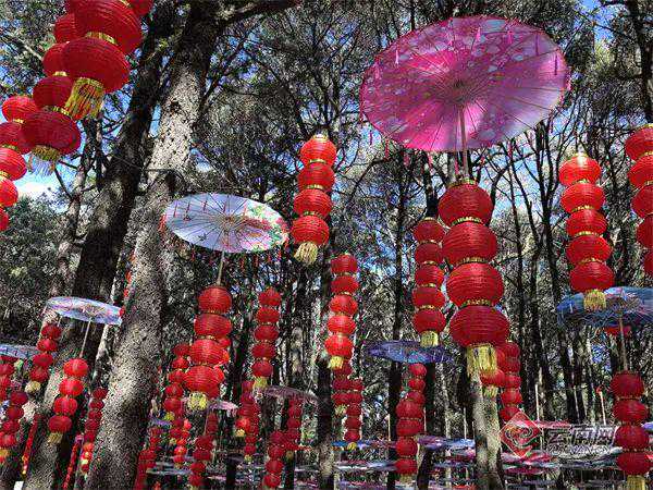 灯展活动期间在公园九夏芙蓉广场举办古风国潮市集,此次市集有文创、特产、年货等,产品琳琅满目;期间还有点灯仪式、国风走秀、汉服古装巡游、福禄寿财神送元宝和福袋、猜灯谜、放河灯等多元文化活动精彩纷呈。