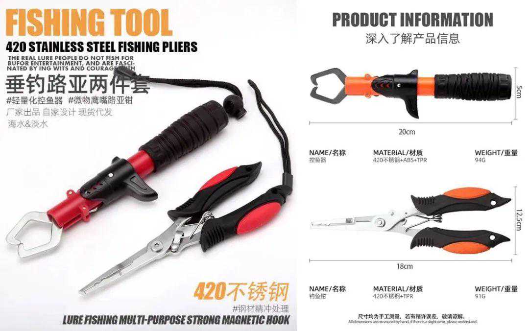 钳子使用420不锈钢,把手使用tpr材质,尾部带失手绳,可减PE线,控鱼器使用塑料和不锈钢的配合,便携且耐用,控鱼效果一流。