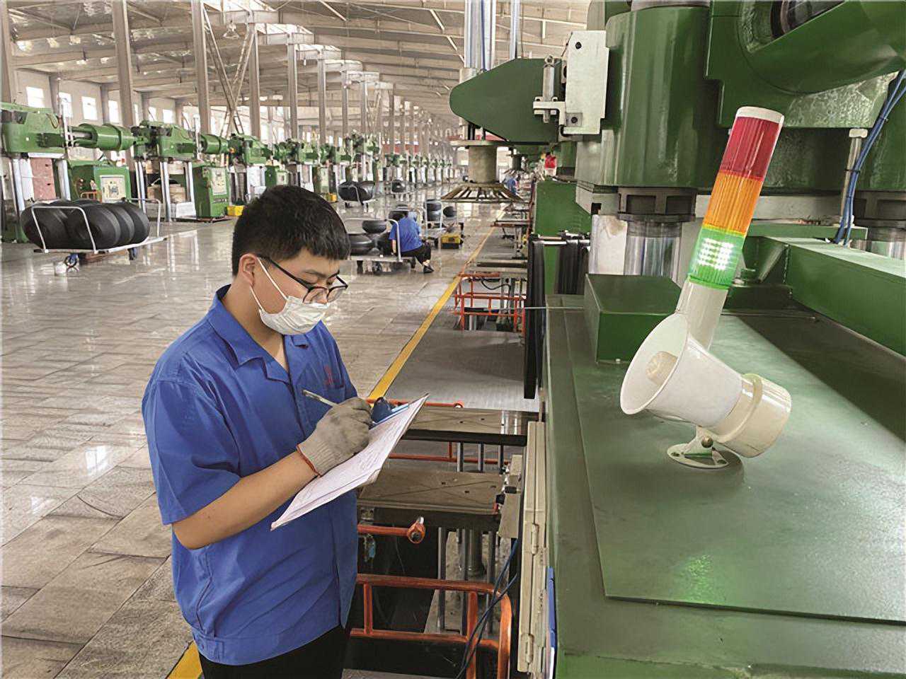 润通橡胶轮胎胶囊生产车间内,工人在工作。