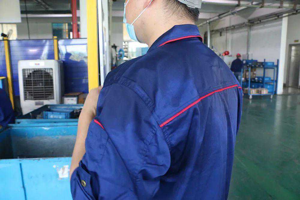 余良富身着封闭劳保服、手戴防护手套,头上戴着安全帽,在准备好防护面罩后,右手拿起工具,左手扶稳,对准焊接点,动作干脆利落。瞬间,火星飞溅,随之一同落下的,还有豆大的汗珠。“焊接车间同一般车间不同。氩弧焊的电弧温度可以达到1800℃以上,在焊接作业时,为了防止被飞溅的火星烫伤,我们必须穿着长及手臂、脚踝的劳保服。”余良富告诉小嘉,此刻他穿在里面的短袖已然湿透了,能感觉到已经黏在了身上。