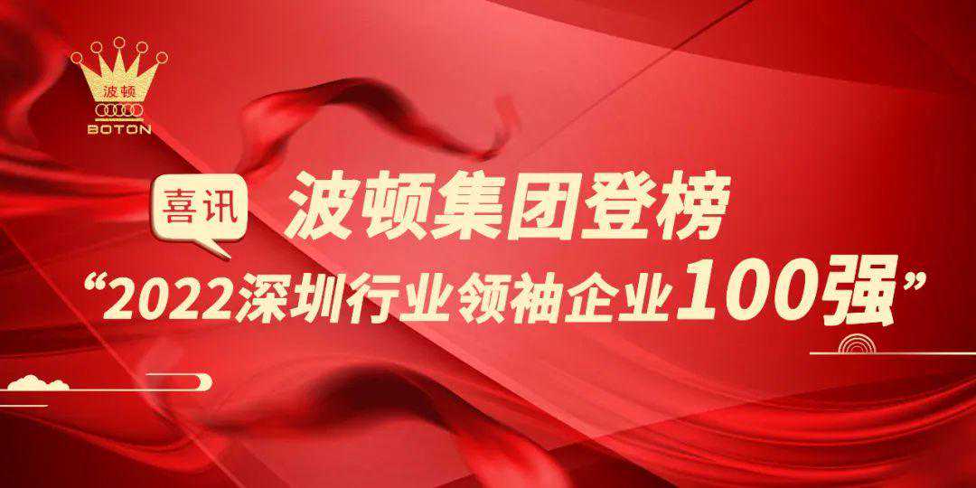 2022年9月27日,由深圳市行业领袖企业发展促进会、深圳商报与读创客户端共同主办的“2022深圳行业领袖企业100强”评选结果出炉,波顿集团作为行业领军企业荣登"2022深圳行业领袖企业百强"榜单,充分展示了波顿集团的综合实力和行业地位,赢得了业内的高度认可。