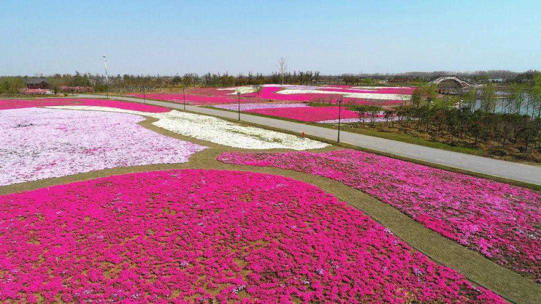 春日的白马湖旅游度假区花开成海