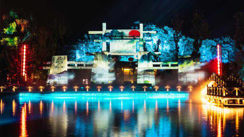 除了水镇的古朴韵味,太行水镇还融入了现代化的业态和生活。图为在太行水镇举办的《梦回太行山水光影秀》。