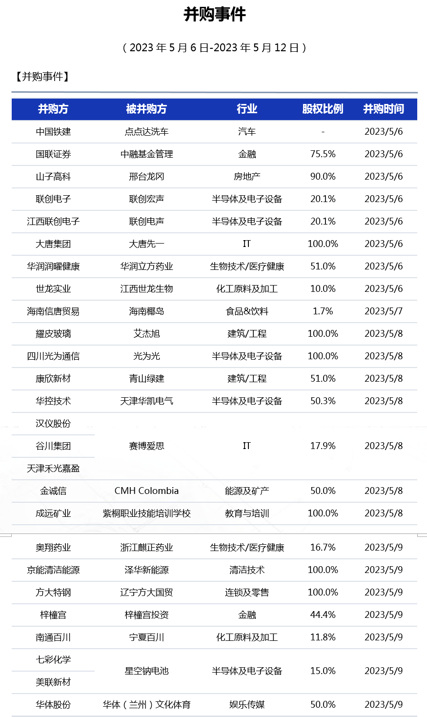 中国铁建股份有限公司对广东省航盛建设集团有限公司,重庆铁发遂渝高速公路有限公司,第一达卡高架高速公路有限公司,中铁十一局集团有限公司,中国铁建财务有限公司进行并购。