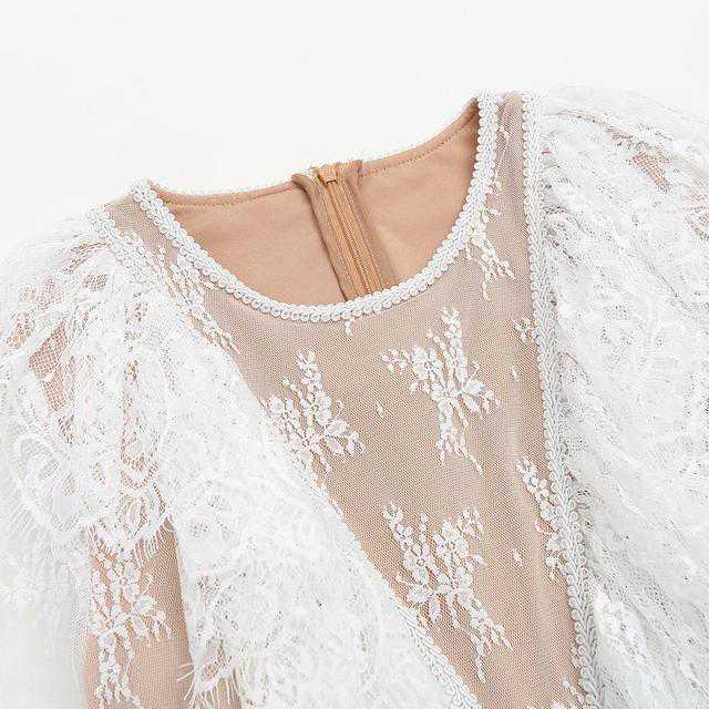 蕾丝拼接柔美清甜相当减龄显年轻,背后精致拉链实用方便穿脱,还不失小性感,新潮的剪载穿上都舍不得脱下来。