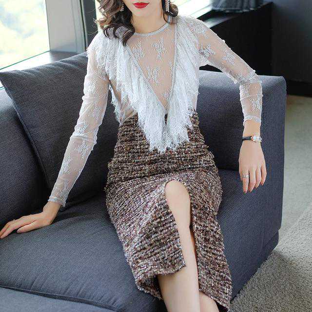 复古的撞色拼接,十分时尚个性,穿着非常的时髦,平整舒适,2017新款名媛时尚修身一步裙,上身满满的文艺范儿。