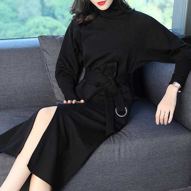 秋冬款连衣裙打底女毛衣裙加厚,贴合颈部,烘托出你的纤细颈部线条,浪漫气息萦绕周身,不费力轻松穿出高级感。