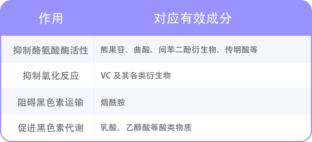 抑制黑色素生成的成分,又分为抑制酪氨酸酶的活性和氧化反应的抑制剂2种。不理解又记不住的话,那就看成分。