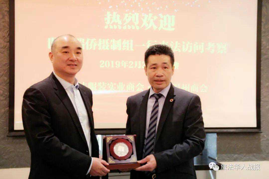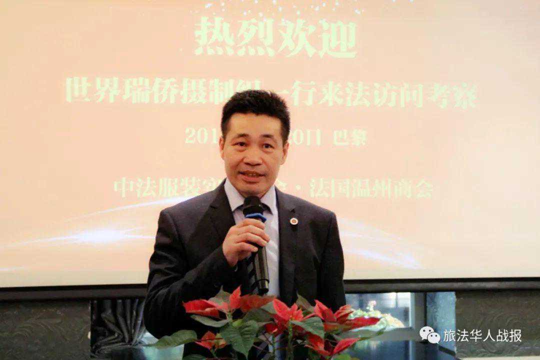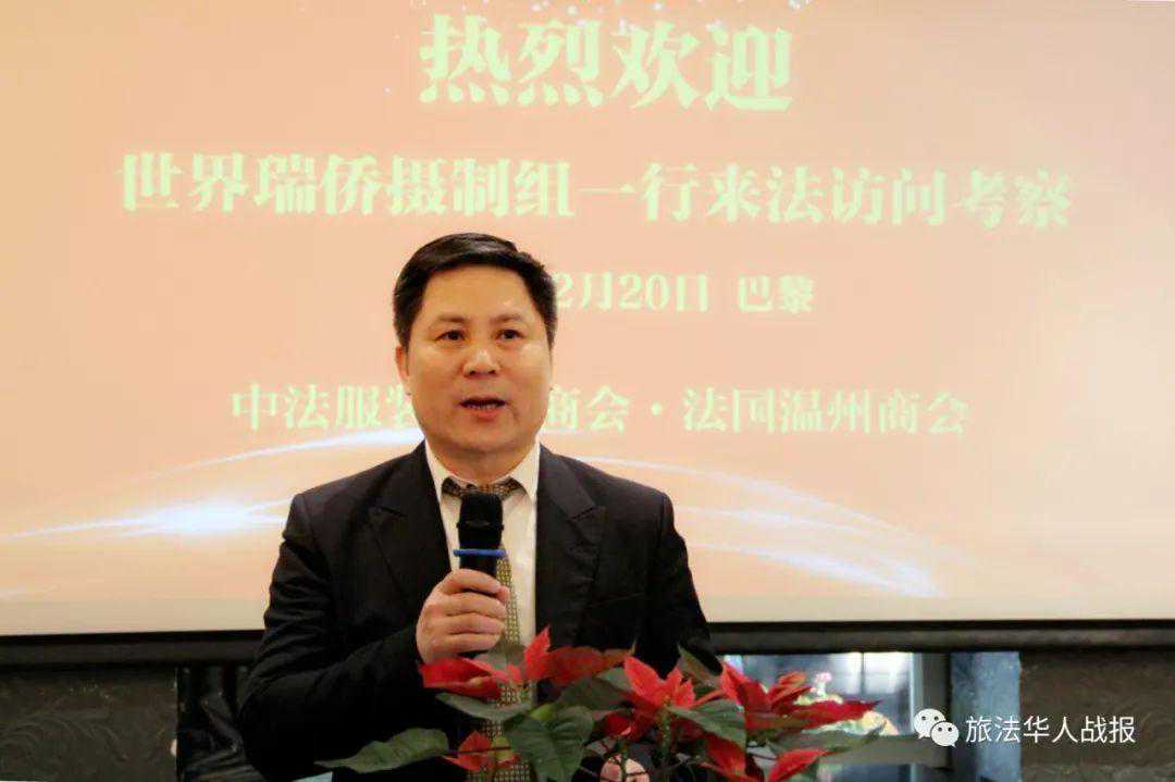 万献国代表摄制组向中法服装实业商会和法国温州商会致以诚挚的感谢,向广大旅法瑞安籍侨胞致以新年的问候。万献国介绍说,《世界瑞侨》是瑞安市广播电视台和瑞安市侨联联合打造的一档电视栏目,一年12期,本次代表团一行六人来到欧洲,主要访问意大利和法国,了解瑞安侨胞在当地的工作、生活和融入情况,拍摄瑞安籍华侨华人和华社的发展,记录大家在海外创业兴业的光辉历程,同时为正在布馆的瑞安华侨历史博物馆收集侨史资料。摄制组此行收获了大量有用信息,瑞安侨胞们发挥自强不息的精神,艰苦打拼奋斗有成,为所在国经济发展做出贡献的同时,也不遗余力反哺家乡,爱国情怀令人感动。今年是新中国成立70周年,他希望做好《世界瑞侨》栏目,以瑞安籍侨胞的海外奋斗史为缩影,展现侨胞风采,讲好中国故事,弘扬民族精神。