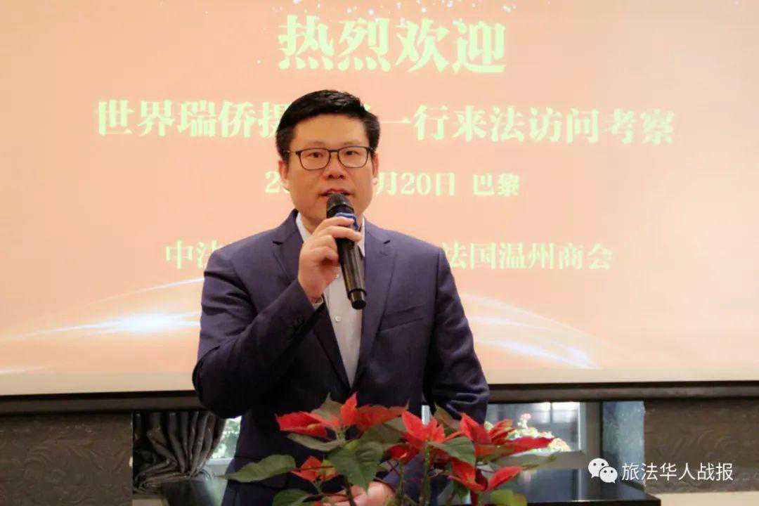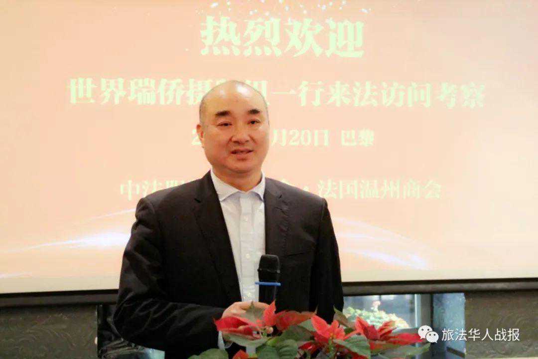 万邦韩代表法国温州商会向远道而来的摄制组一行致以热烈的欢迎和衷心的感谢。万邦韩表示,很高兴与中法服装实业商会共同接待来自家乡的代表团。本次《世界瑞侨》摄制组于春节期间来到巴黎采访旅法瑞安籍华侨华人,助力瑞安和瑞安人发展,商会对于这种正能量宣传将给予全力协助。法国温州商会成立于2001年,商会成员大部分都是瑞安籍华商,涉足行业包括国际贸易、跨境电商、地产业、矿业、旅游业、餐饮业及媒体、艺术等不同门类。商会成立18年来稳步发展,同时也得到了中国驻法使馆、当地政府、家乡政府、涉侨部门的大力支持。今后商会将带领会员多回乡走走看看,实地考察家乡商机,希望能为家乡发展献计出力。最后,他祝愿摄制组一行在法国拍摄顺利,并借代表团为瑞安乡亲们捎去新年的美好祝福。