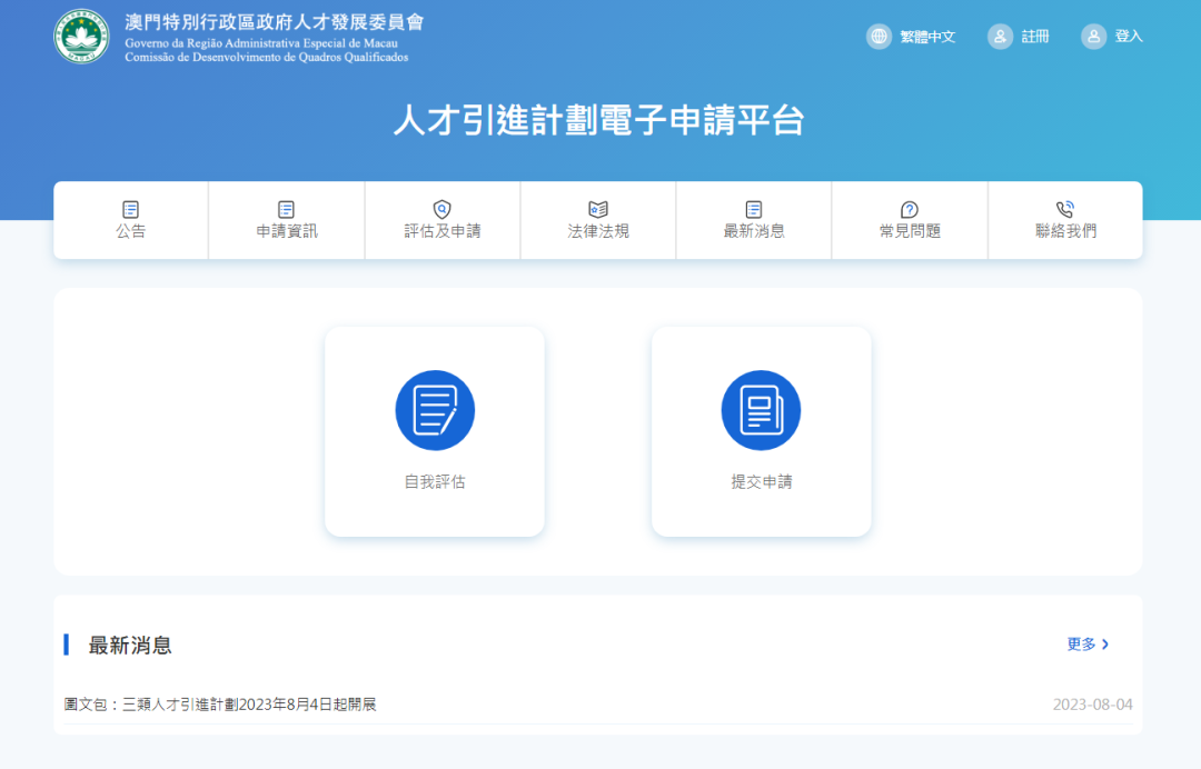 就在今天(8月4日),澳门人才发展委员会官网正式开通上线了“人才引进计划电子申请平台”。