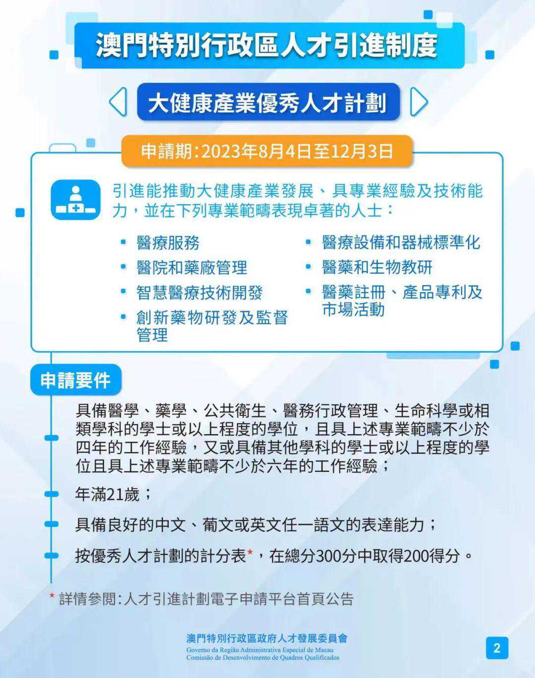 以及“大健康产业”的人才可以通过「优秀人才计划」和「高级专业人才计划」申请澳门身份。