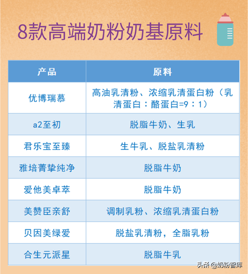 下面是8款高端奶粉的产品名、版本、产地等基础信息。