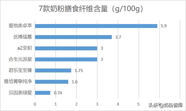 ⑤除美赞臣亲舒,其他7款奶粉均含有膳食纤维,含量方面如下表:
