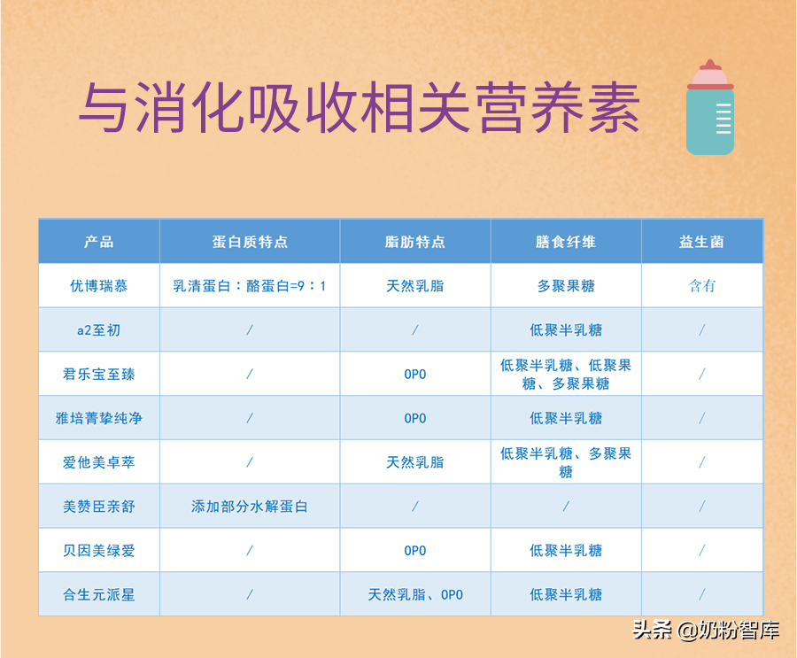 ③优博瑞慕、爱他美卓萃、合生元派星含天然乳脂,天然乳脂中含有天然OPO。