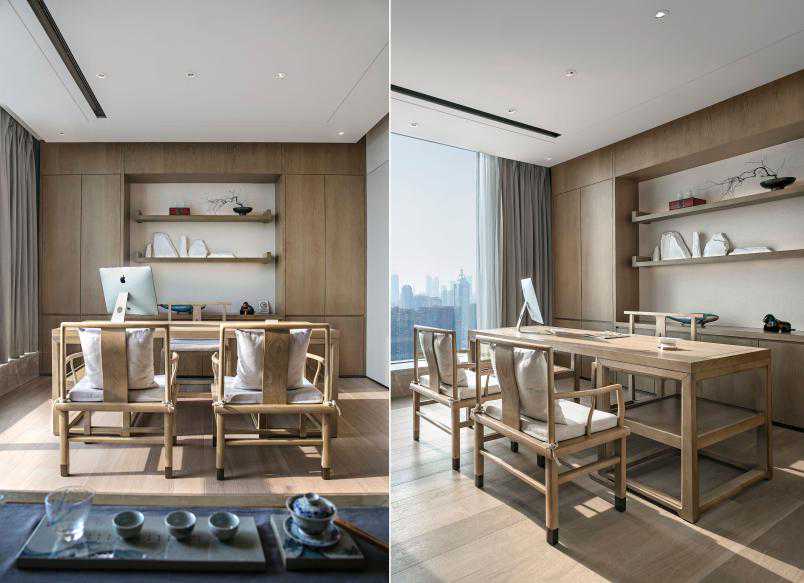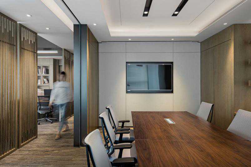 HTD办公室位于深圳福田商务中心区,该项目以深厚的文化底蕴、深诣美学意境去诠释现代办公空间,设计师将人文情怀及中式气韵作为勾摹空间的经验线,强调整体空间色调和形态传递,奠定非凡气度,令空间拥有一种大气敞阔又意境悠远的深意。