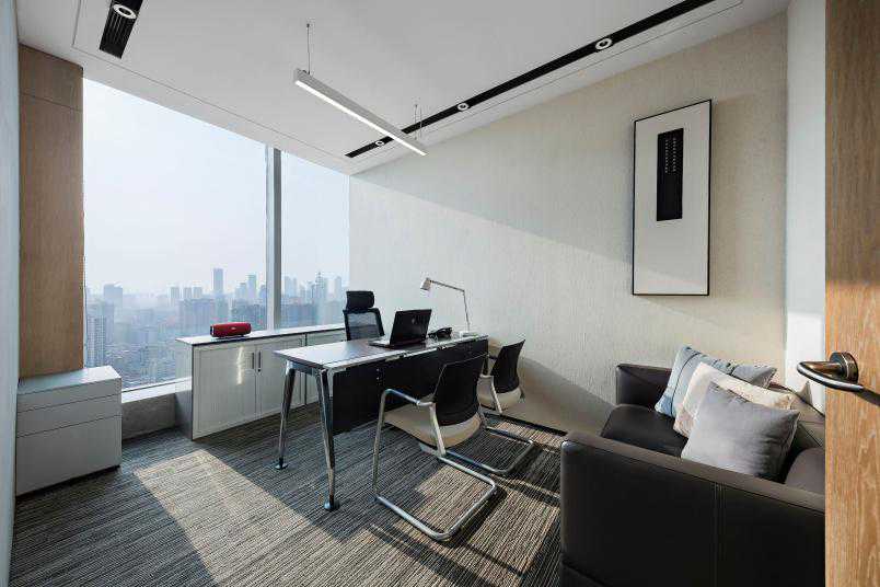 设计师借助优越的高层地理位置,巧妙利用绝佳的自然采光打造出通透明亮的办公空间。使智能高科技会议室、公共休闲区域、开放办公区域、总经理办公室、核心高管专属办公室及不同尺度的部门独立办公室皆能享受空中极佳的视野与美景。