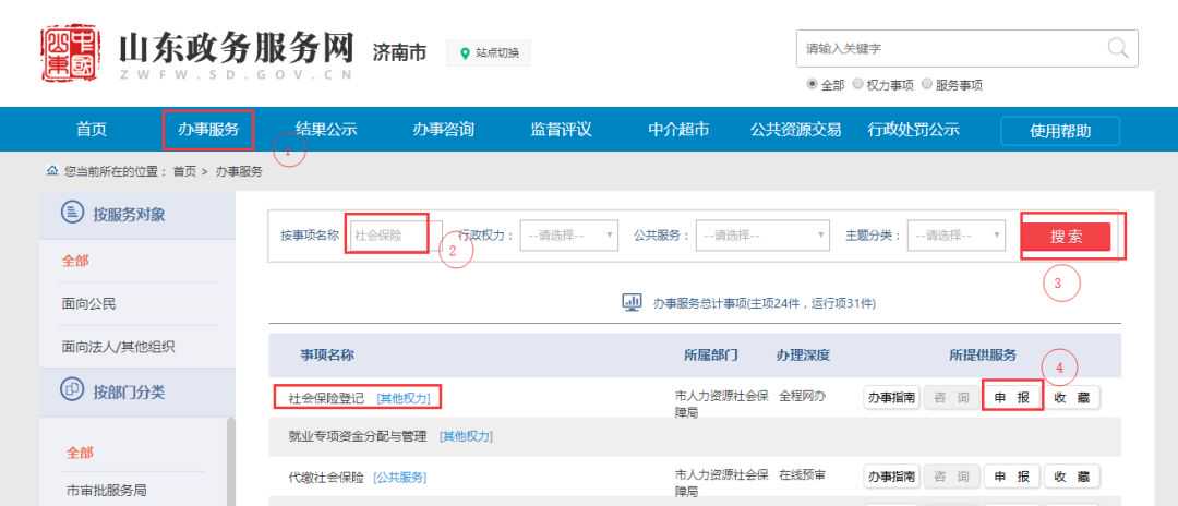 ②通过济南市政务服务平台()登录。