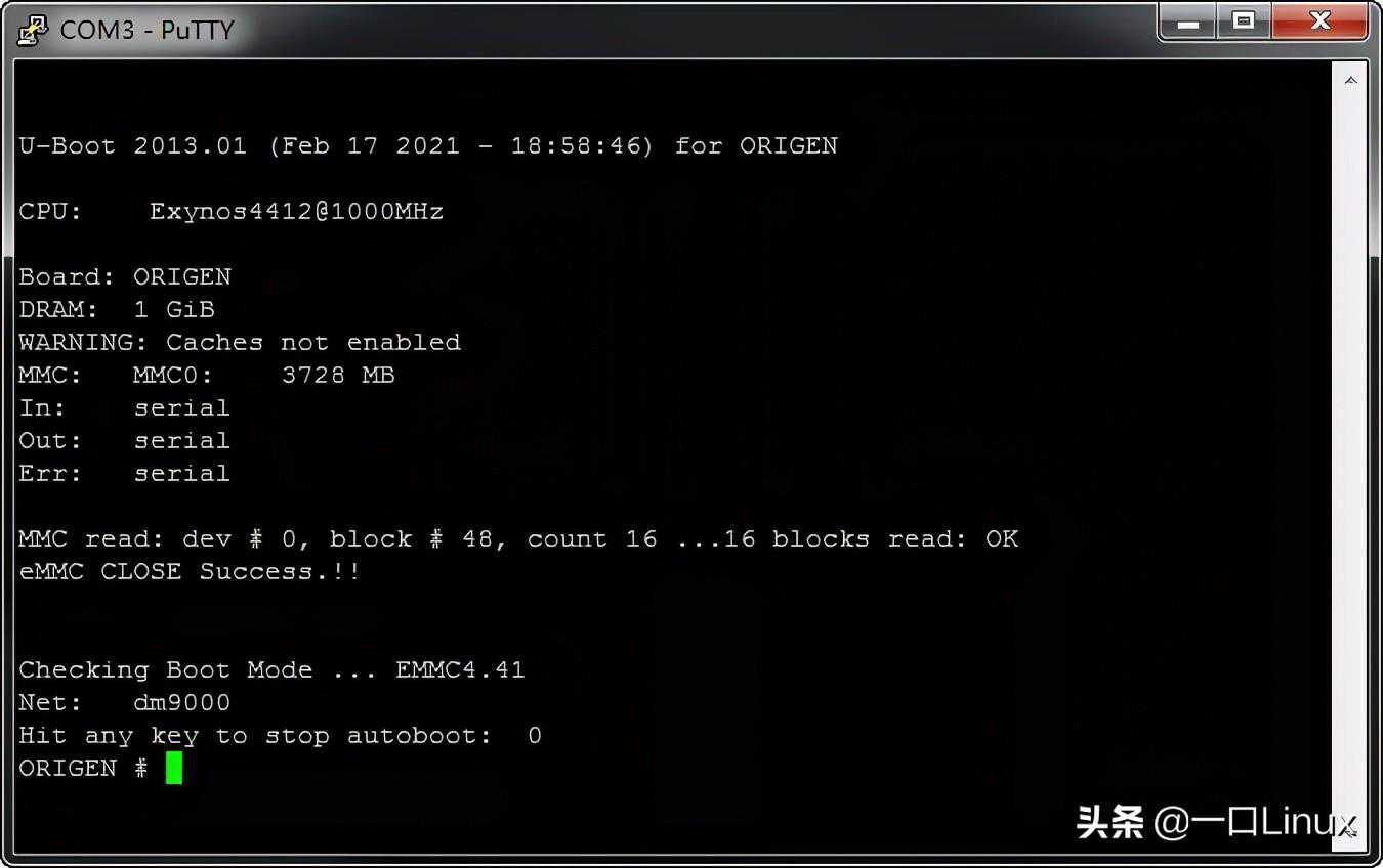 在读秒倒计时时按任意键。由上图所示,已经支持EMMC和dm9000网卡。