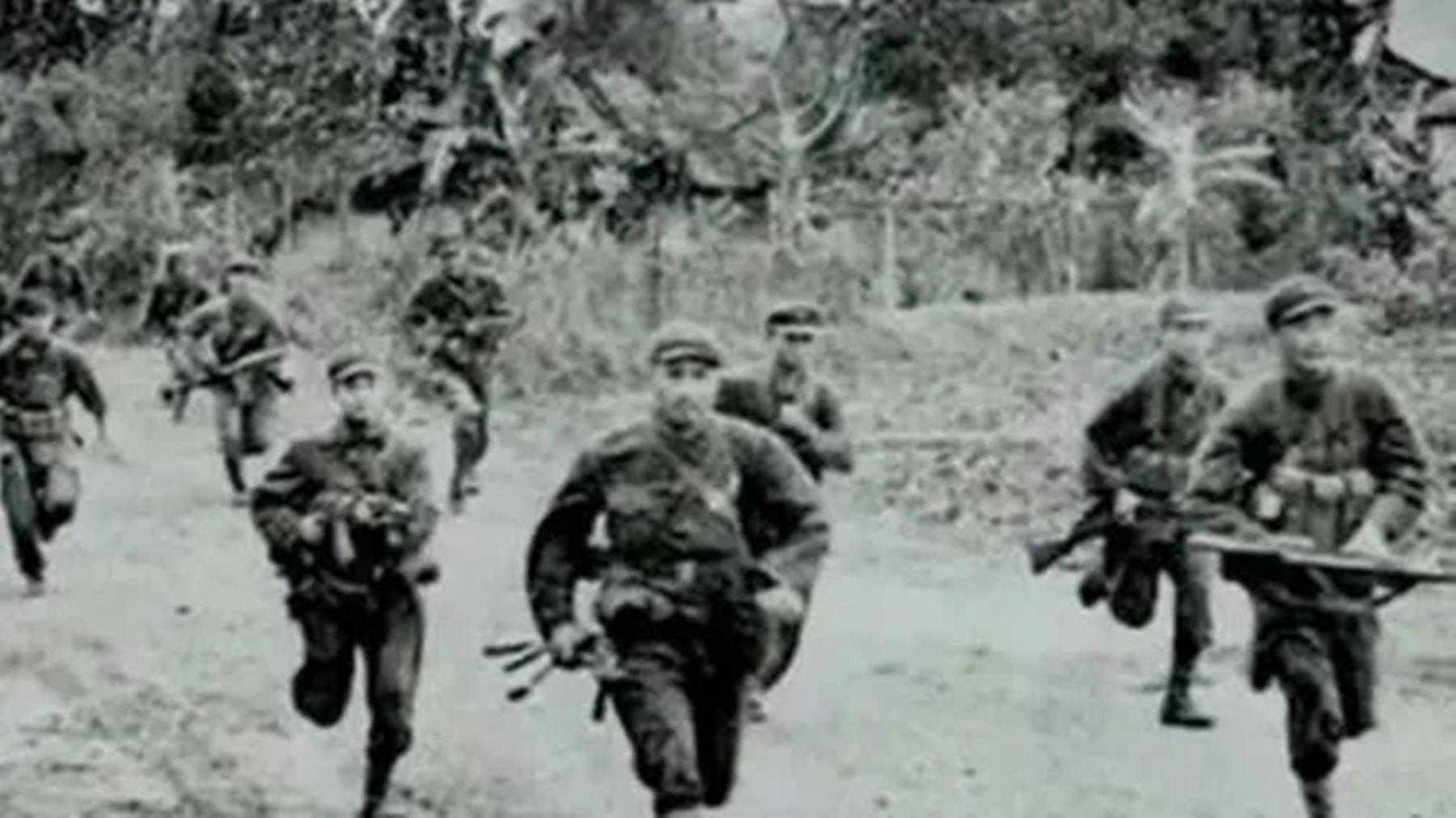 随着吴华一声令下,埋伏在树丛当中的解放军战士们便高喊着奔向敌人。