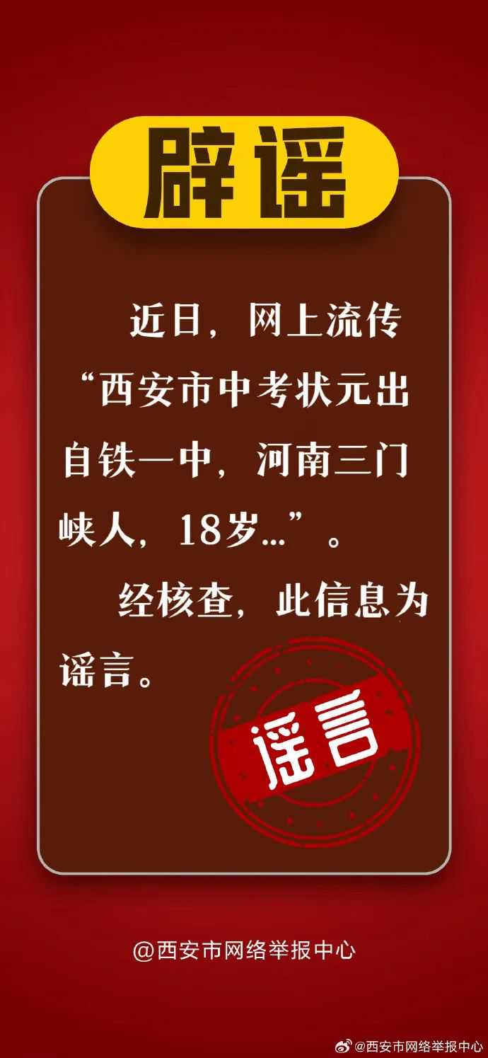 近日,网上流传“西安市中考状元出自铁一中,河南三门峡人,18岁”