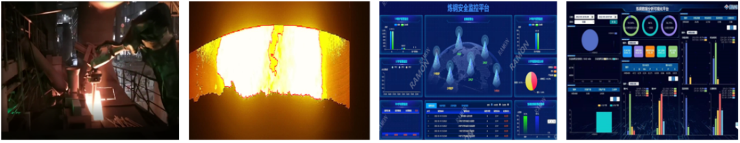 炼钢厂采用镭目智能技术,既可减少“3D”岗位和一线生产人员,提升安全监控和安全连锁水平,杜绝安全事故发生。还可不断节能减排,实现各类污染物排放的预警监控,杜绝环保事件发生。